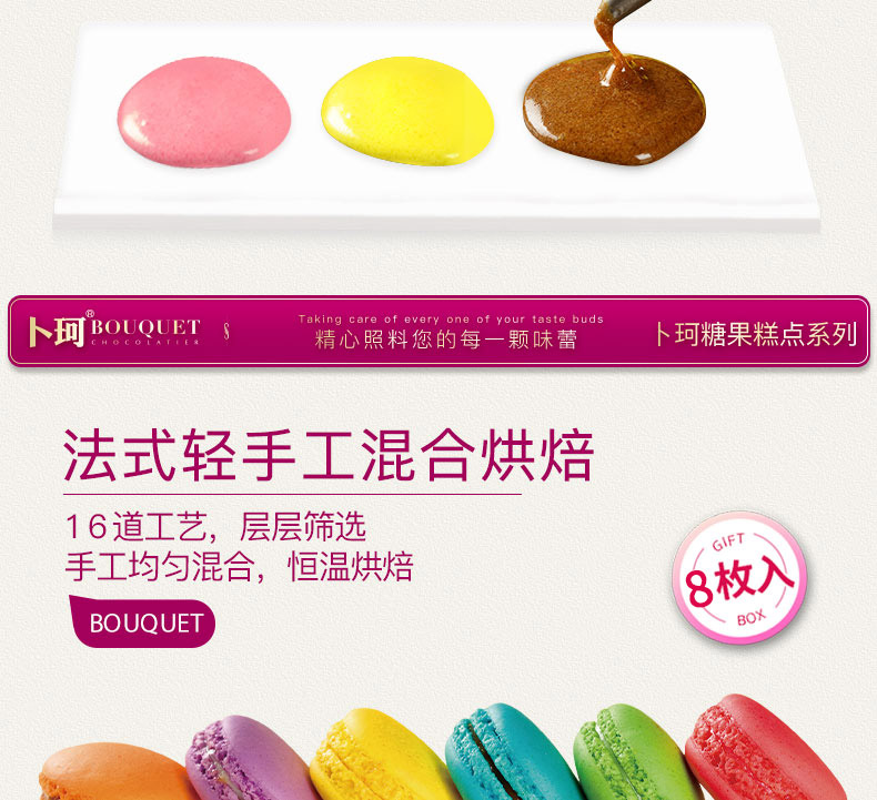 艾菲勒马卡龙12枚甜点法式手工休闲甜品西式糕点礼盒装零食点心